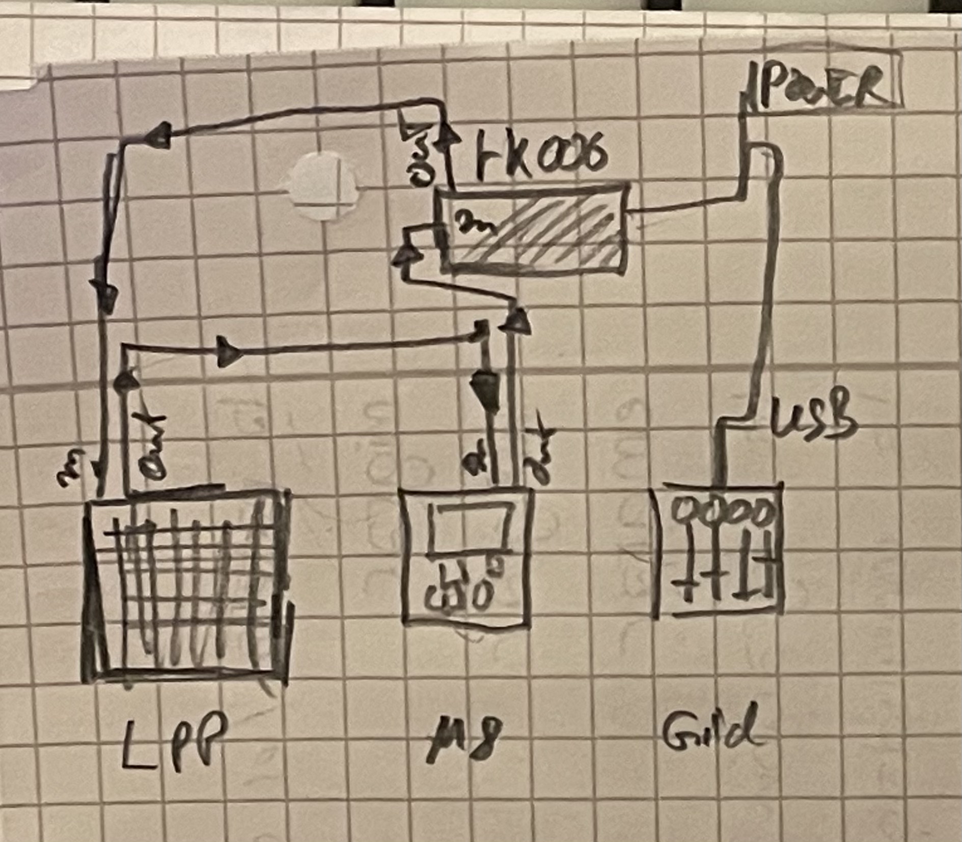 The most awesome solution would be to only use USB Midi with a USB Hub connected to mk006, connecting M8, LPP and grid controllers to the hub. But thats a different approach I tried before that also did not work.
