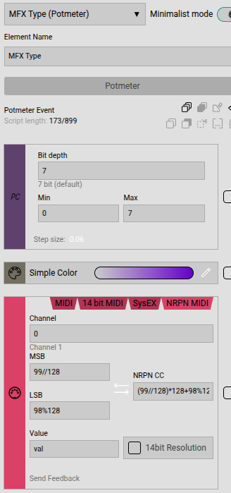 I’ve set the value range in the purple PC section, but that doesn’t seem to affect the red NRPN part. Putting 0-7 in the NRPN Value field returns a syntax error from the editor.