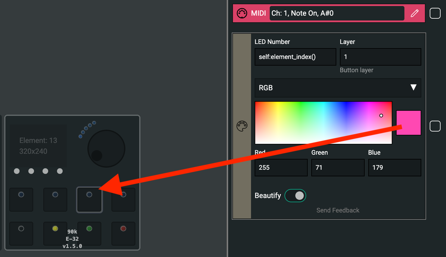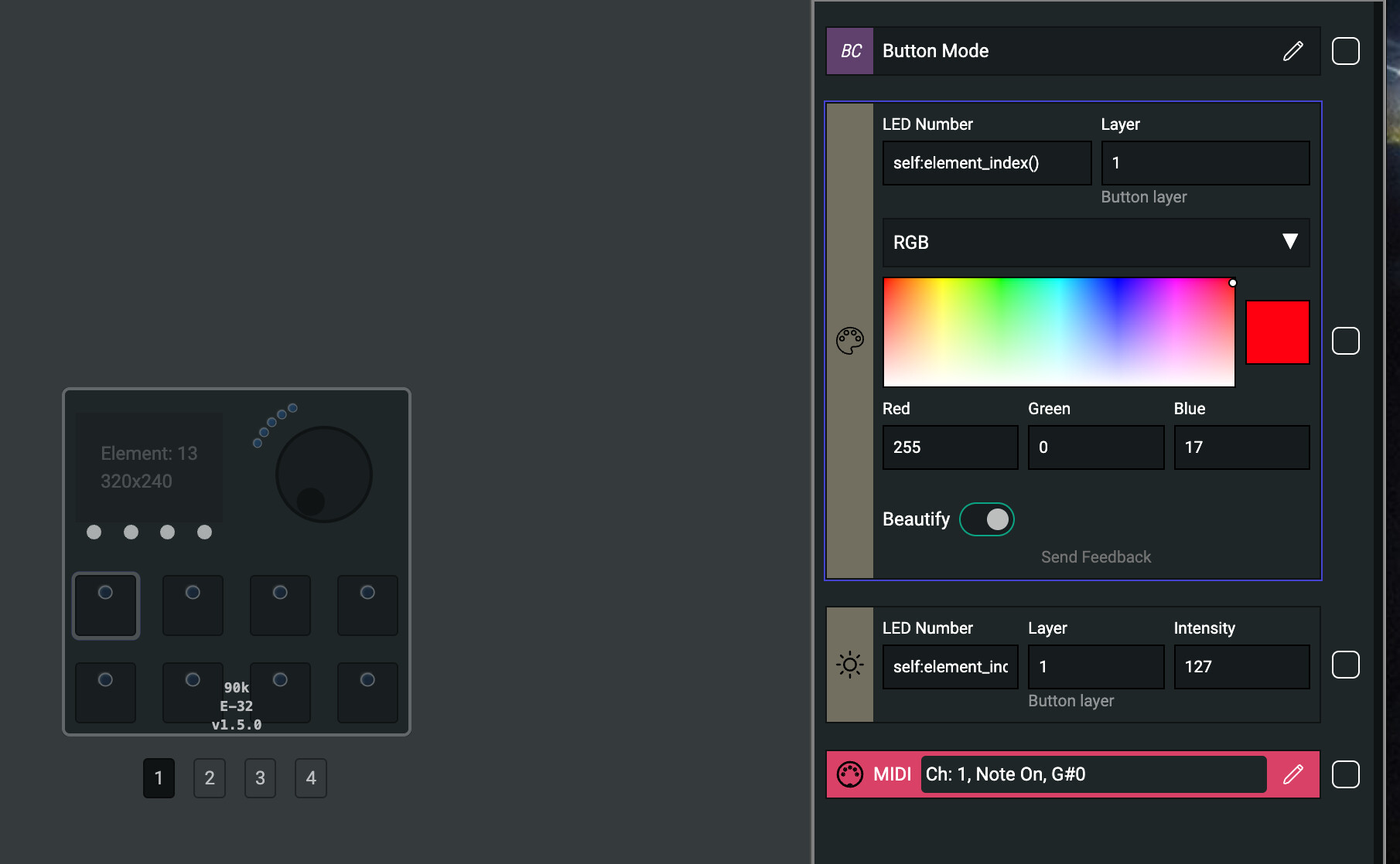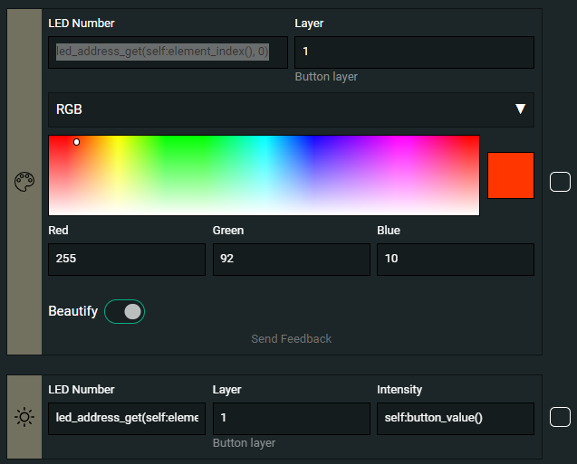 The LEDs donât react at all, when changing from âSimple Colorâ to âColorâ in the action block. Even not in static mode, to setup the âidleâ colour. Even in Grid editor they donât change like the simple color ones?!