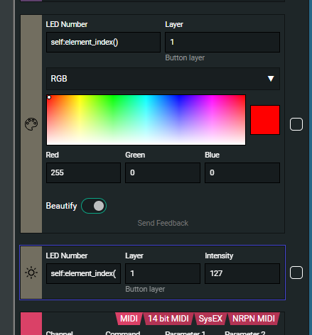 In the past the LED address was equal to the Element Index in the cases of buttons on the TEK2, but not anymore. But the Intensity and Color blocks still include the old legacy functions.